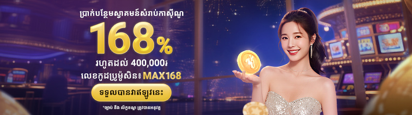 - ដាក់ប្រាក់ដំបូង ហើយយើងនឹងផ្តល់ប្រាក់បន្ថែមស្វាគមន៍ 168% រហូតដល់ KHR 400,000/USD 100 ដើម្បីលេងនៅលើ SBO កាស៊ីណូផ្សាយផ្ទាល់