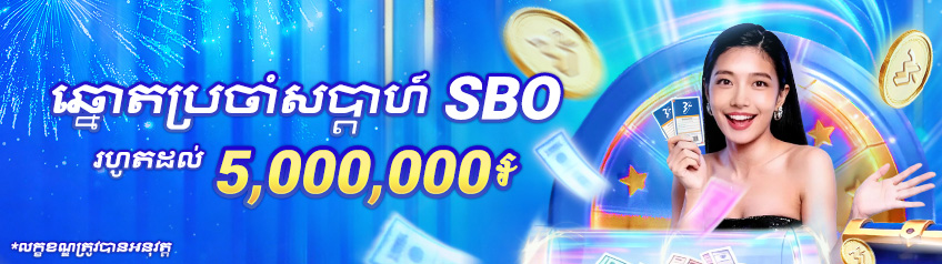 - ដាក់ប្រាក់យ៉ាងតិច 20,000៛/USD 10 ទៅក្នុងគណនី SBO របស់អ្នកក្នុងអំឡុងពេលប្រូម៉ូសិន។