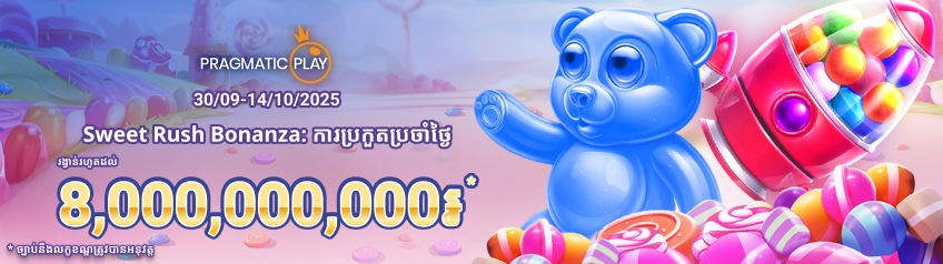 ចូលរួមការប្រកួតប្រចាំថ្ងៃ Sweet Rush Bonanza ហើយចាប់យករង្វាន់ជាសាច់ប្រាក់សរុបរហូតដល់ 8,000,000,000៛/USD 2,000,000
